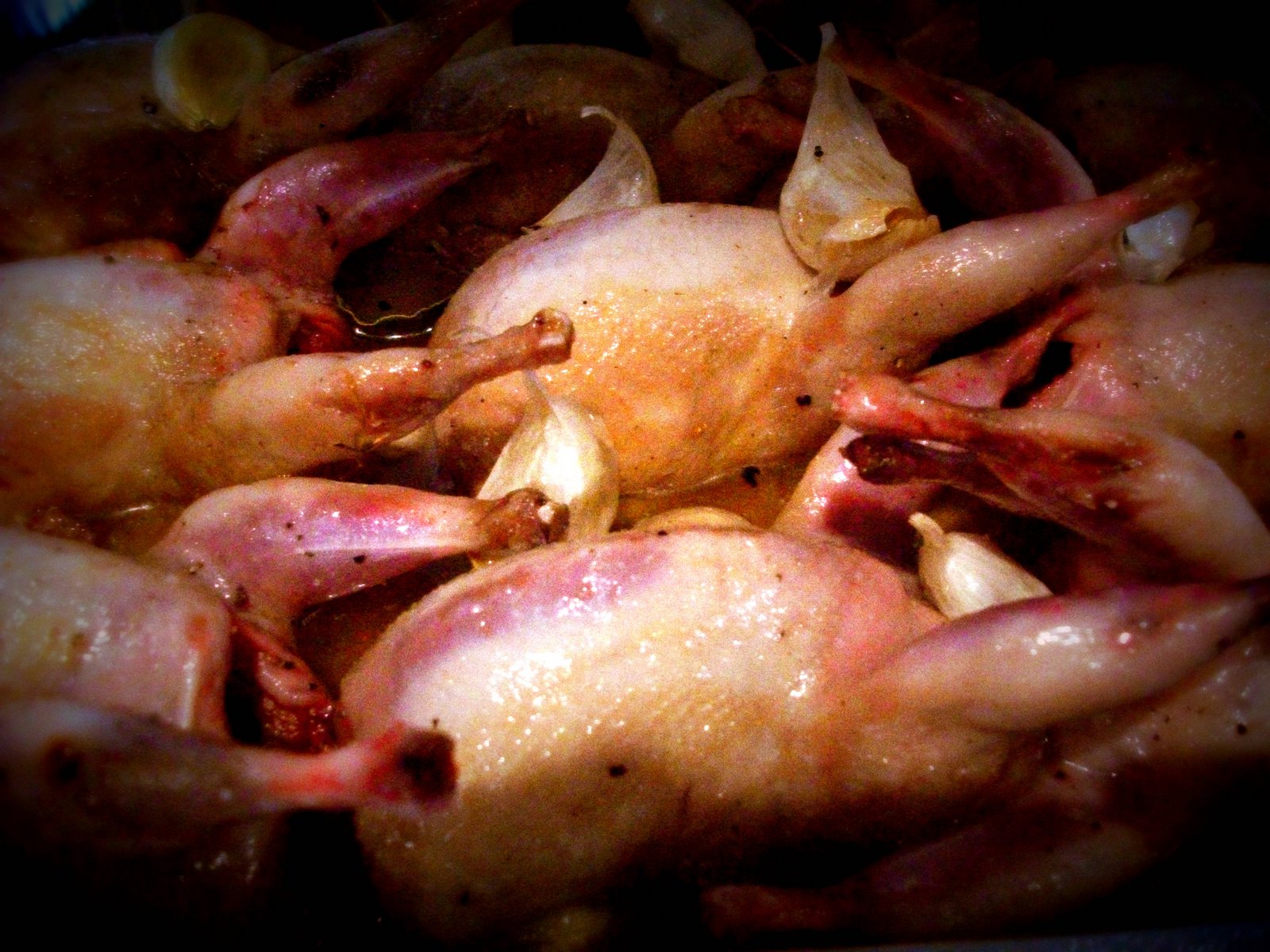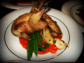 Braised Quail With Confit Fennel & Garlic, Green Beans, Olives & Red Pepper Coulis