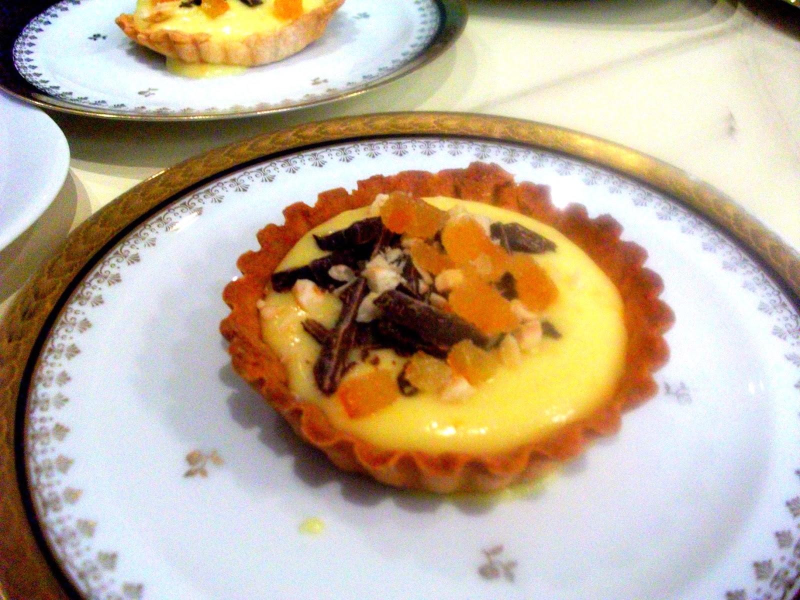 | Tartelette d'Orange Curd, Eclats de Chocolat & Noisettes, & Zestes d'Orange Confite Orange Curd Tart, Hazelnuts & Chocolate Shards, Candied Orange Zest |