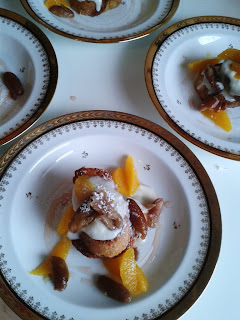 | Pain-perdu au chèvre sucré, orange et dattes |