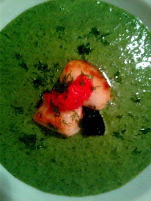 | Noix-de-saint-jacques grillées sur velouté |