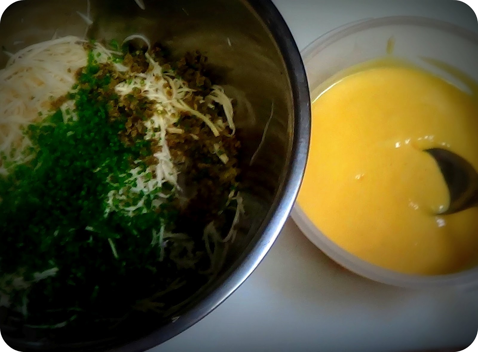 Now, the remoulade. Maintenant, la rémoulade.