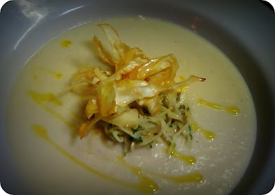 3.Une fois que le céleri est tendre, votre crème et lait devrait être infusé. Versez cette préparation sur le céleri, mélangez un peu afin de dégager les saveurs au fond de la casserole, ajoutez deux gousses d'ail écrasées et laissez doucement réduire, mélangeant occasionellement. Lorsque le céleri commence à s'émietter, mixez le tout en purée et assaisonnez si besoin.