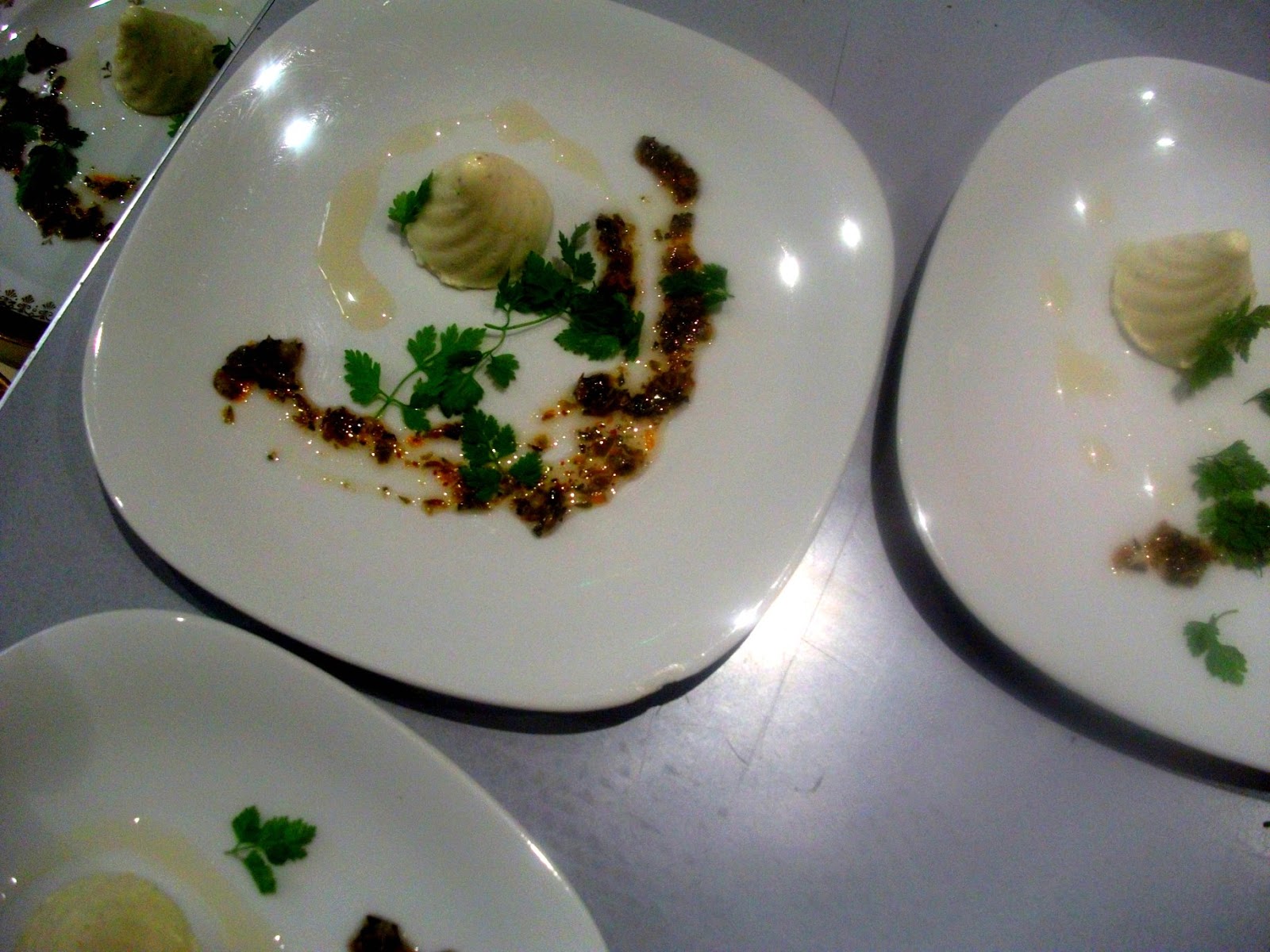 By the time the water is almost completely evaporated the cauliflower will be cooked. Now we add enough cream to just barely cover the cauliflower and grate in nutmeg to your tastes; i love nutmeg so i use a third to a half of a 'nut' but prerhaps less if this is an entrée and not an amuse bouche. Reduce the cream by half on a low heat, then place in a blender and while you purée pour in an extra 50 to 75 ml of fresh cream. This has the peculiar effect of making it lighter and certainly a more silky panna cotta like texture.