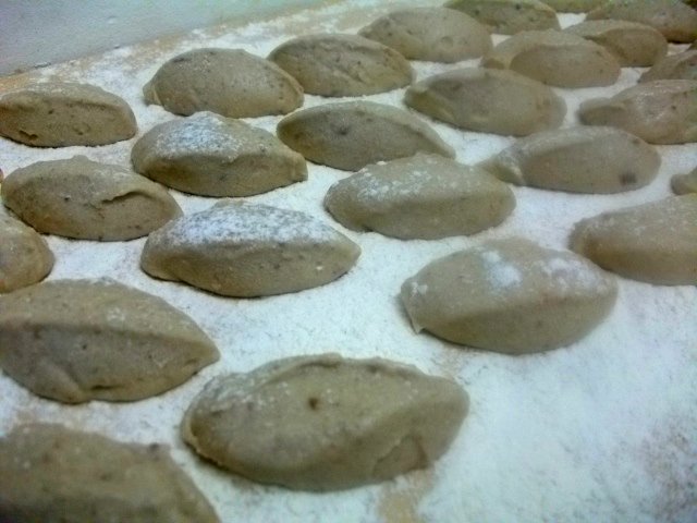 I like to brush walnut oil into my moulds rather than a spray for de-moulding. I love the marriage of walnut and nutmeg and this is being served with a walnut oil so is also very symbiotic. Once the moulds are lined well with the oil spoon in the panna cotta mix, give them a little while at room temperature to start to cool down then cover without touching the panna cotta itself and put in the fridge. They will be set in about 2 and a half to 3 hours.