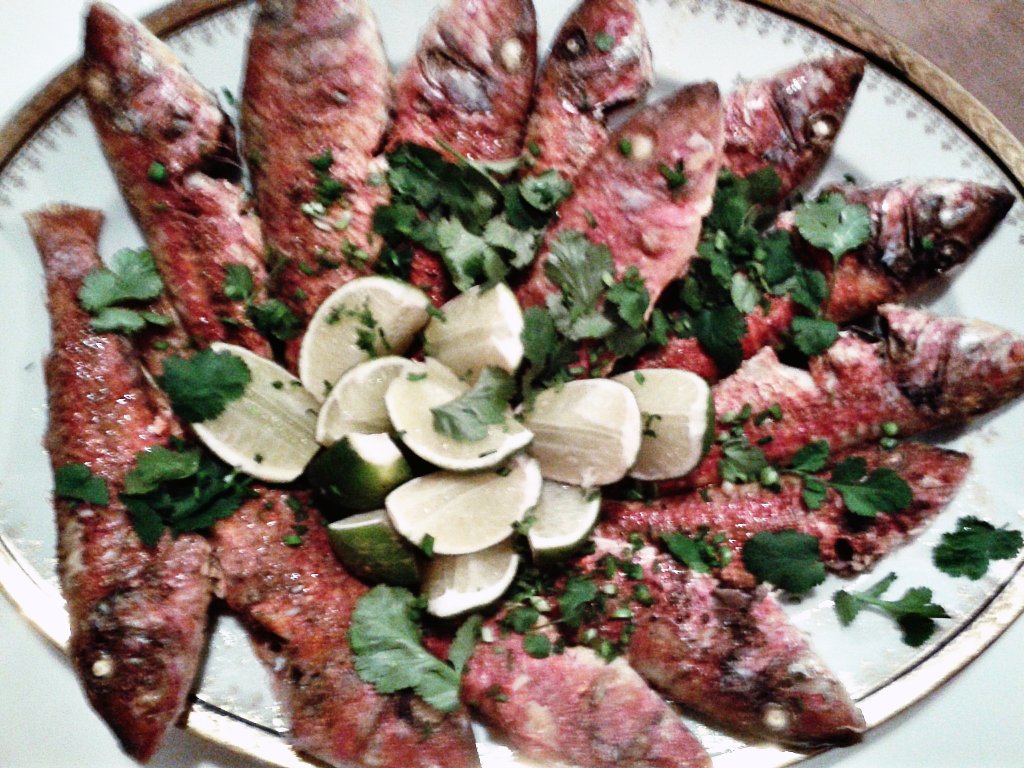 Rougets entiers (pour l'abondance et l'unité) avec une sauce maison au citron et miel |