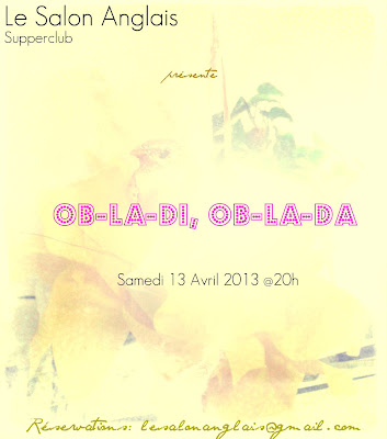 Le prochain évènement supperclub du Salon Anglais, Ob-La-Di, Ob-La-Da, se tiendra le samedi 13 Avril à 20h! On vous laisse déchiffrer cet étrange titre en vous joignant-ici le menu. Un petit indice, ça sent bon le printemps qui commence...