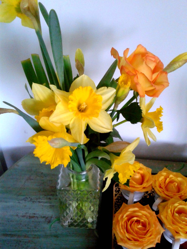 | Fleurs fraîches (de chez Flora Moda) ...et sur les murs! |